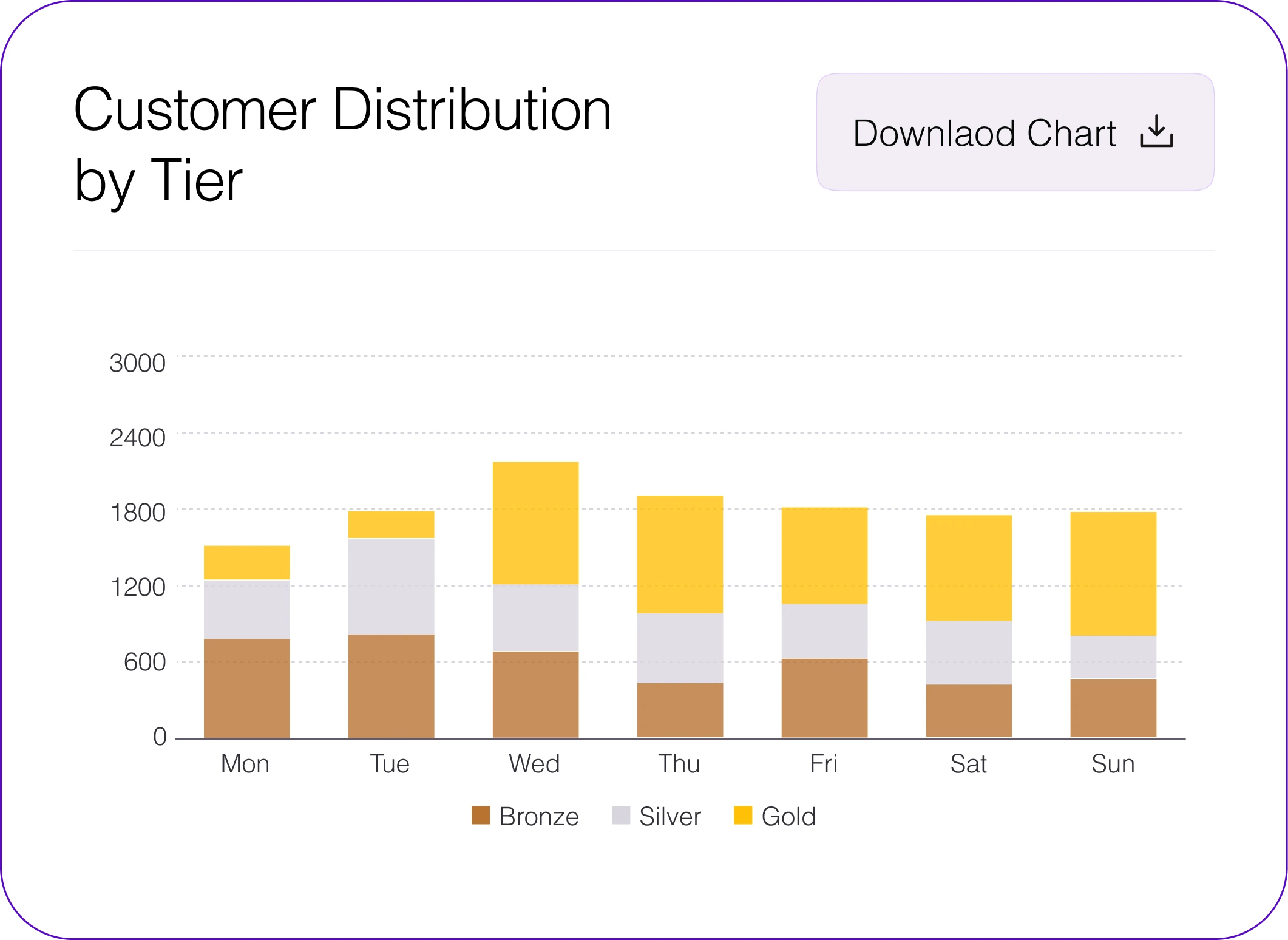 Design Bronze, Silver, and Gold tiers based on visits, spend, or custom logic.